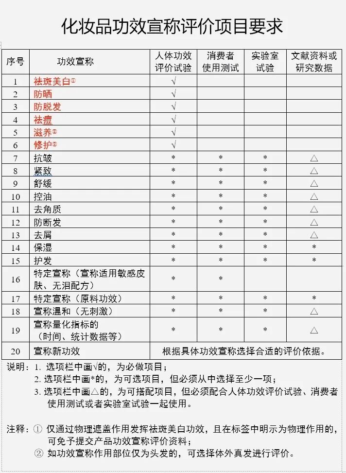區(qū)別于征求意見(jiàn)稿,《規(guī)范》第十二條規(guī)定,能夠通過(guò)視覺(jué)、嗅覺(jué)等感官直接識(shí)別或通過(guò)物理作用方式發(fā)生效果且在標(biāo)簽上明確標(biāo)識(shí)僅具有物理作用的新功效,可免予提交功效宣稱評(píng)價(jià)資料。對(duì)于需要提交產(chǎn)品功效宣稱評(píng)價(jià)資料的,應(yīng)當(dāng)由化妝品注冊(cè)和備案檢驗(yàn)機(jī)構(gòu)按照強(qiáng)制性國(guó)家標(biāo)準(zhǔn)、技術(shù)規(guī)范規(guī)定的試驗(yàn)方法開(kāi)展產(chǎn)品的功效評(píng)價(jià),并出具報(bào)告。